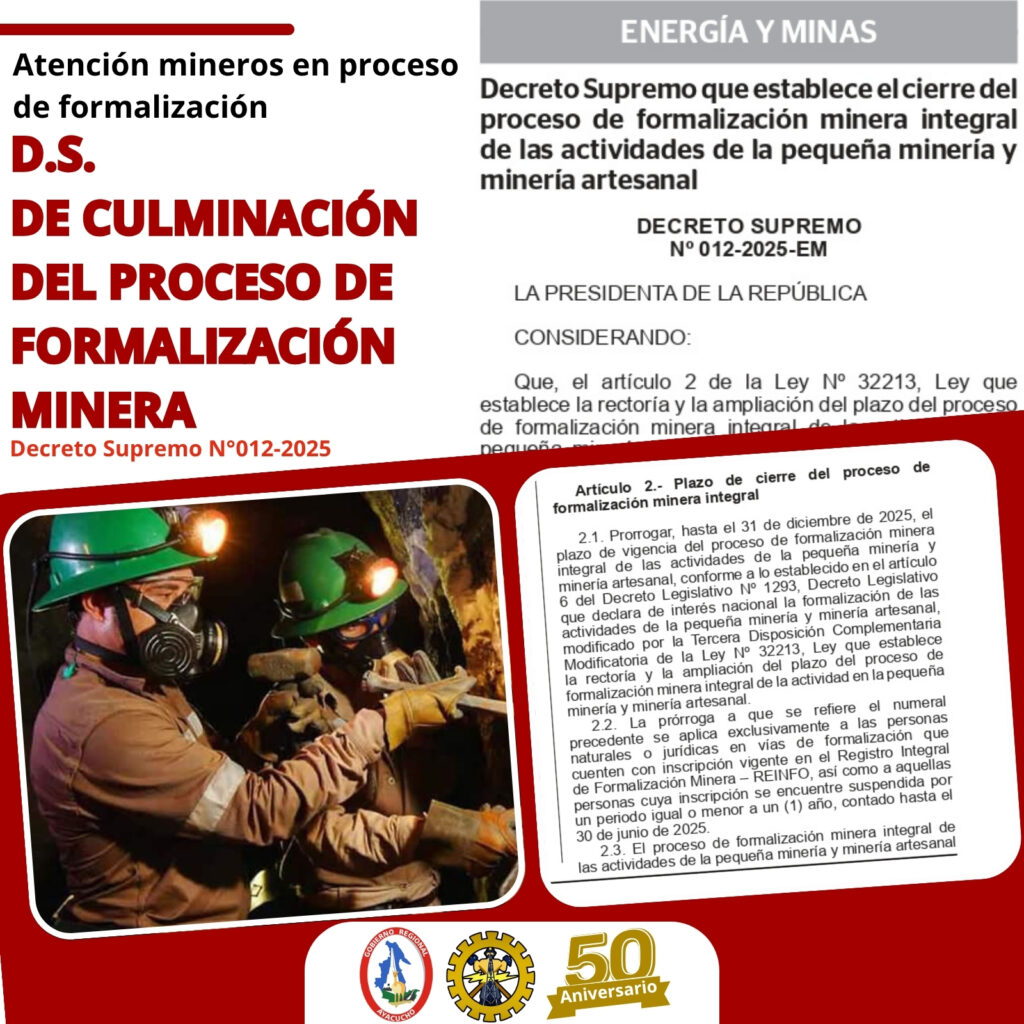 📅 Conclusión: El proceso de formalización minera culminará definitivamente el 31 de diciembre de 2025. de acuerdo al presente D.S. el proceso de formalización culminará el 31 de Dic. 2025
